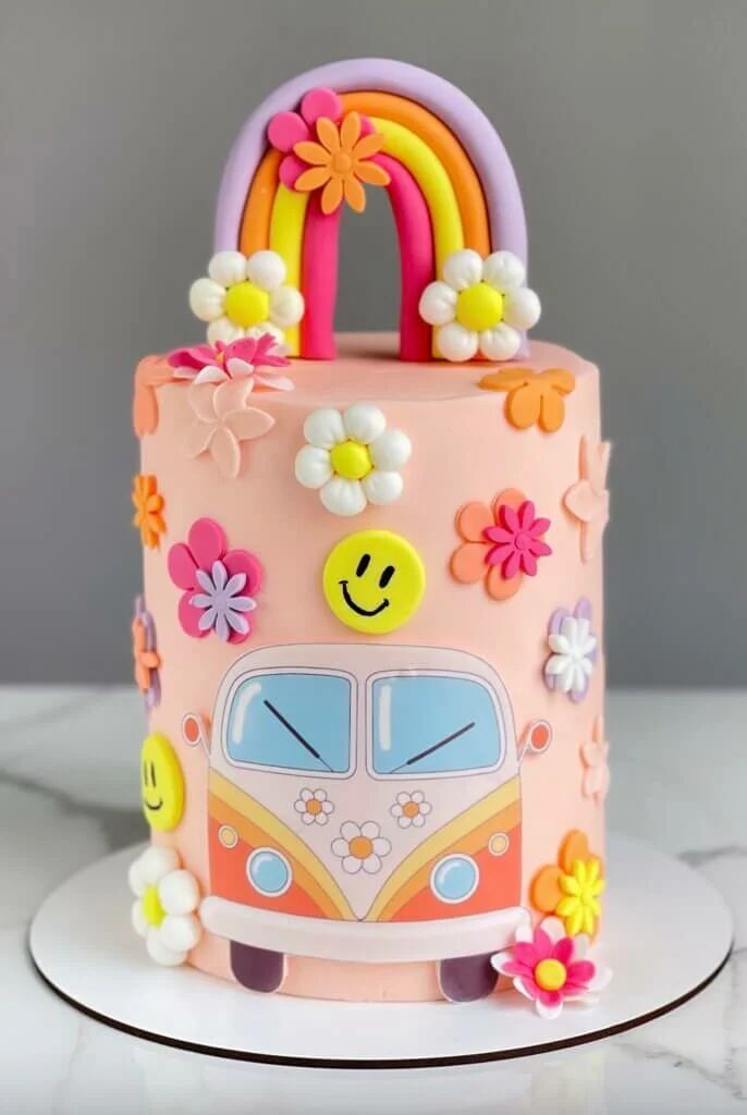 Gâteau Hippie fleurs et arc-en-ciel